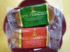 沖縄からみえたお客様のお一人が「私は大分出身なので・・・」と、大分のお菓子を持ってきて下さいました。お菓子の名前は大友宗麟の教名の「ドン・フランシスコ」です。外側の生地はアーモンドクリームを使ったもの、中味はメロンとブルーベリーのジャム、もうひとつはリンゴ味の2種類。戦国時代の大分は異文化が入った所だったというのがお菓子に残っていました。 (HaS)