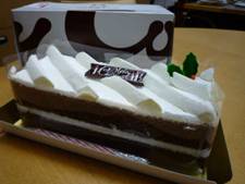 いつも美味しいものを持って来て下さる方が、おやつ時にケーキの箱を持ってみえました。ぬぁんとチョコレートシフォンのクリスマスケーキです。当のご本人は「私はもう帰ります・・・」と着くなりおっしゃって、月曜日に頂いた丸テーブルの上のケーキを召し上がってあっという間に「また来年」とお帰りでした。