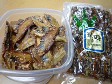 どちらも味醂干ししてあり、左のかれいは頭から尻尾までパリパリです。「アテに良いでしょう」とのことでしたが、どちらも早速昼間から食べ始めました。(HaS)