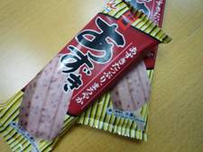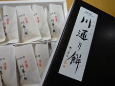 お餅ときなこの組合せ、味は「赤坂もち」とそっくりです。小袋に1つづつ楊枝がささっていて、お皿なしでどんどん食べられちゃいます。(HaS)