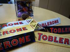 「TOBLERONE」とあるチョコは蜂蜜とアーモンド入りで、左の箱はミルク・ホワイト・ブラックの三種類、合計5つの詰め合わせでした。 この向こうの大き目チョコボールも一緒に頂きました。 (HaS)