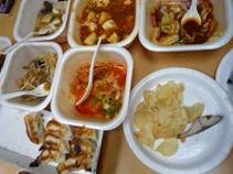 このたくさんのビール達と一緒にテーブル一杯の中華(・・・半分以上皆さんのお腹に収まったあとなので、淋しい写真になりました)、〆に「おにぎり」も食べました。(HaS)