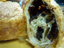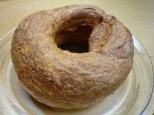 打合わせに見えた方が「家で食べたら美味しかったので」と、雨の中、銀座のお店に寄って来て下さいました。直径18センチ。外側はクロワッサンのようにパリパリのチョコレートパンでした。(HaS)