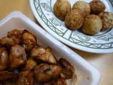 お初に食べてみましょう♪と、冷凍のたこ焼きと鶏肉の を頂きました。